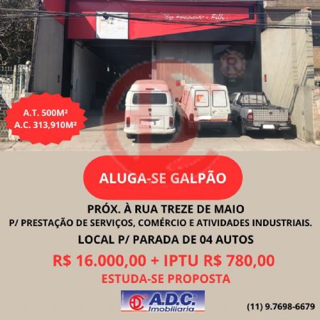 SALÃO COMERCIAL LOCALIZADO NA VILA GALVÃO PROX. A RUA TREZE DE MAIO, PARA FINS DE PRESTAÇÃO DE SERVIÇOS, COMÉRCIO E ATIVIDADES INDUSTRIAIS, LOCAL PARA PARADA DE 04 AUTOS, ESTUDA-SE PROPOSTA. VALOR DE ALUGUEL R$ 16.000,00 + IPTU R$ 780,00.